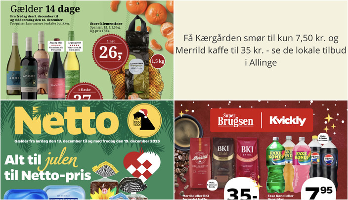 SuperBrugsen tilbyder Merrild eller BKI formalet kaffe i flere varianter (350-400 g) for kun 35 kr. pr. pose. Tilbuddet gælder fra fredag den 12. december til torsdag den 18. december, men husk, der er et begrænset parti og max 6 poser pr. kunde.