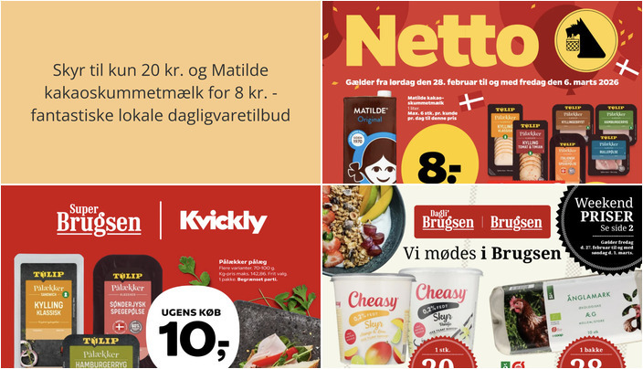 Vi har kigget på denne uges tilbudsaviser for dagligvarebutikker i Allinge og fundet nogle skarpe tilbud. Her er et udpluk af de bedste tilbud fra DagliBrugsen, Netto, og SuperBrugsen/Kvickly.