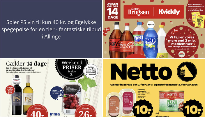 Vi har kigget på denne uges tilbudsaviser for dagligvarebutikker i Allinge og fundet nogle skarpe priser. Her er et udpluk af de bedste tilbud fra DagliBrugsen, Netto og SuperBrugsen.